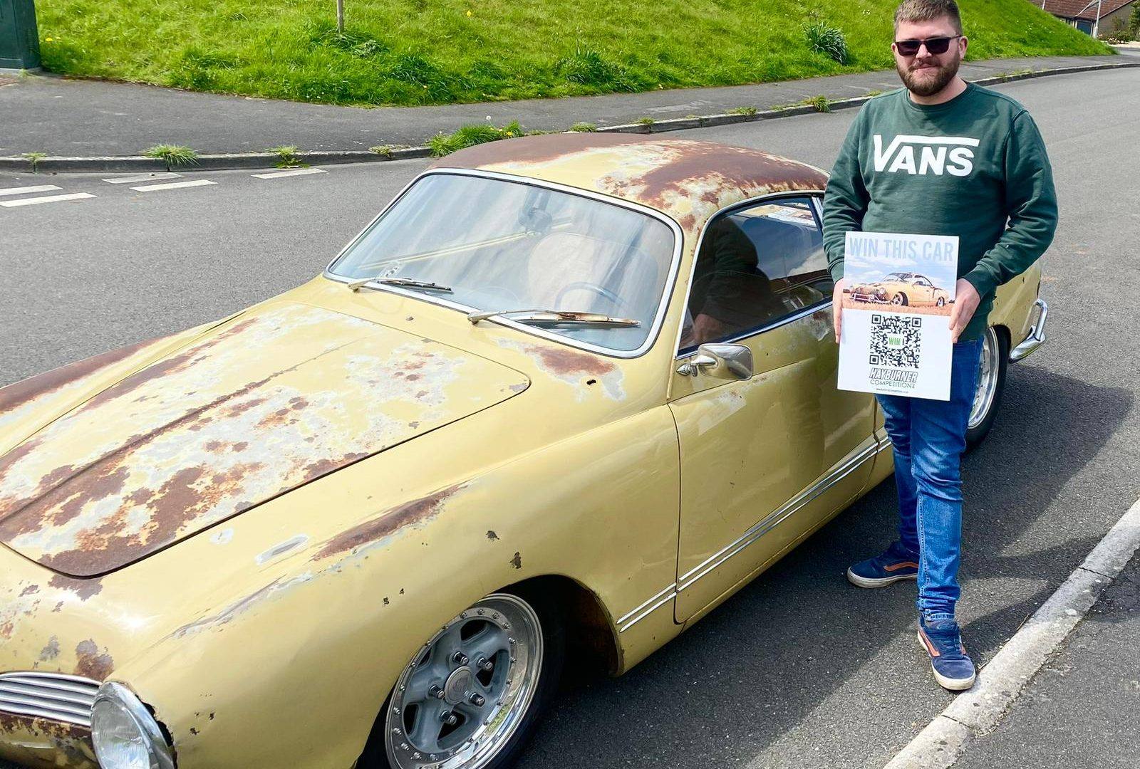 It was our first big one! The 1969 Karmann Ghia. Chris was the lucky chap who had his number called and here he is taking delivery of his new car! Well done Chris! Enjoy it mate!